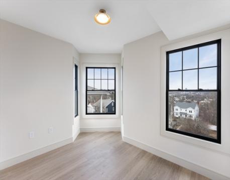 Unit 2 | 1,788 SF. Newly renovated top floor luxury residence offering four bedrooms and two-and-a-half baths, designed for elevated city living. This sun-filled unit features an open-concept layout with engineered hardwood floors, quartz countertops, stainless steel appliances, and an oversized kitchen island ideal for both entertaining and everyday living. Expansive living and dining areas are complemented by a flexible bonus room perfect for a home office, private gym, or playroom. Perched atop a hill with sweeping city skyline views from every level, the home offers exceptional natural light, two parking spaces, and a refined sense of privacy—just moments from premier shopping, dining, public transportation, and major commuter routes.