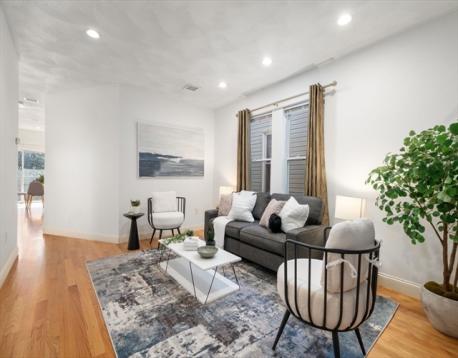 Take in a 360 degree view of the city from the private roof deck of this penthouse level condo nestled in East Boston's Eagle Hill. Adaptable and spacious, this home features a central living room, a rear covered porch, refinished hardwood floors, and 3 generous bedrooms. The modern kitchen offers stainless steel appliances, granite countertops, and a dine-in space. The bathroom provides convenience with a washer-dryer built in and a refreshing skylight above the sink. The primary bedroom has a clean-slate bonus space, which could be thoughtfully re-imagined into a walk in closet! Outside, the condo has a fenced backyard, ready for gatherings and pets. Eagle Hill provides direct access to the Blue Line, local parks , and acclaimed restaurants like Angela's and Rino's. This PH condo combines urban accessibility with neighborhood charm.