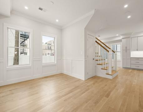 2026 New Construction South Boston Detached Single Family. This exceptional newly built single family home is privately set back off the street and consists of 4 bedrooms, 3.5 spa like baths, eat in chefs kitchen with Thermador appliances, custom cabinets, classic quartz counters, 2 living rooms, dinning room, expert finish work, white oak solid hardwood floors, headhouse with wet bar, an amazing wrap around roof deck with parapet for privacy, out door TV setup, water spigot, gas line for grilling, spectacular 360 degree city views and 2 full size parking spots with EV charging availability.