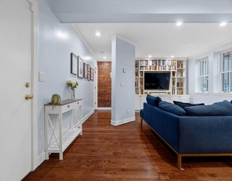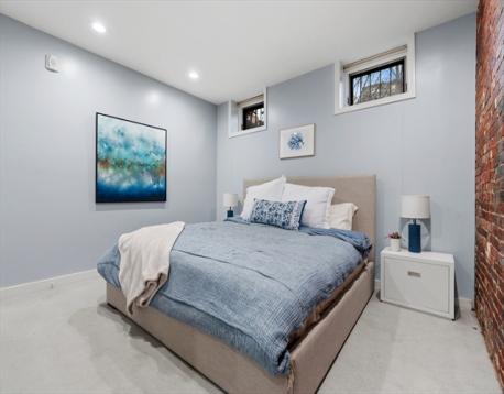 Rare 1150+ square feet of single-level living in this prime location two bed, two-full-bath residence. The open layout centers around a granite and stainless chef's kitchen, complete with custom cabinetry and a breakfast bar for four. The gracious living and dining space impresses with gleaming hardwood floors, new wall of built-ins, high ceilings, and expansive windows that flood the room with natural light. Glass door leads to a private, fenced brick courtyard-style patio, beautifully landscaped with mature plantings. A private stair leads directly to Lawrence Street. The primary bedroom features ample closet space and wall of exposed brick. The larger bathroom has radiant floor heating, an oversized vanity, and built-in storage. French doors open to large 2nd bedroom with windows that also flank the lovely outdoor space. A second bath showcases elegant tile work and a glass-enclosed shower. All this steps from Back Bay Station, shopping, restaurants and endless cultural attractions.