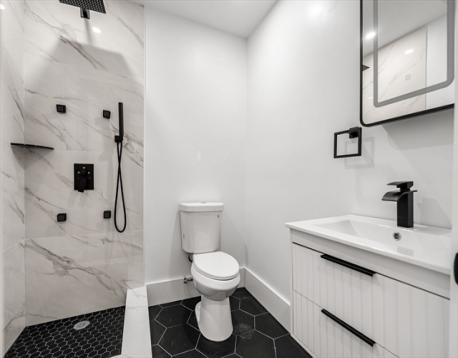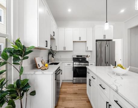 Stunning newly gut-renovated bi-level condo in the heart of the Dorchester/Roxbury line. This expansive 3-bedroom, 3.5-bath residence showcases sleek white quartz countertops, beautifully curated bathrooms, and generously sized bedrooms throughout. The open-concept dining, living and entertaining space is flooded with natural light from oversized windows, creating a bright and welcoming atmosphere. Upper level features two bedrooms both with en suite baths and the main level layout offers an alcove with ideal flexibility for a home office, gym, or additional living space. Off-street parking included! Conveniently located near Boston Latin School, Longwood Medical Area, Northeastern University, UMass Boston, and Roxbury Community College—this home blends modern living with unbeatable access to the city. If you are looking for great value this spacious unit cannot be missed!