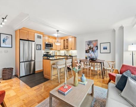 Welcome to Tremont on the Common, unit 10S. One of Boston’s premier full-service high-rises located directly across from Boston Common. This updated one-bedroom, one-bath condo on the 10th floor offers impressive city views, an updated kitchen with granite countertops, stainless steel appliances, and custom cabinetry. The home features a new, modern bathroom with high-end finishes, meticulously upgraded with thoughtful attention to detail. The open living and dining area is filled with natural light through large windows overlooking the city. Building amenities include 24-hour concierge, fitness center, residents’ lounge, outdoor seasonal pool, and garage parking options. Perfectly situated near the Public Garden, theaters, restaurants, shopping, and the MBTA—ideal for those seeking refined city living or a strong investment opportunity.