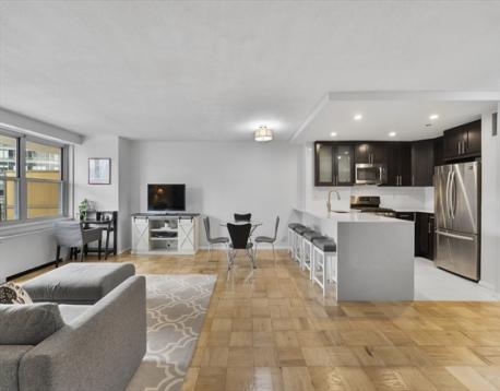 Discover the largest one-bedroom layout at Tremont on the Common, newly renovated and perfectly positioned for effortless city living. The updated kitchen with seating flows into a spacious living and dining area, ideal for everyday comfort or entertaining. Step onto your private covered balcony and enjoy sweeping city views. The oversized bedroom features a walk-in closet, complemented by generous storage throughout. A refreshed bath offers classic white tile and a granite vanity. Residents enjoy a grand new lobby, fireplaced lounge, outdoor saltwater pool, modern corridors, and a fully equipped fitness center. With 24/7 concierge, on-site management, and garage parking with guest options, this move-in ready home delivers exceptional value, service, and location. A strong investment opportunity in the heart of the city. Some images have been virtually staged to illustrate the property’s potential. Unit has the potential for in-unit laundry installation; buyer to perform due diligence.