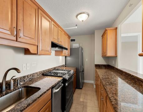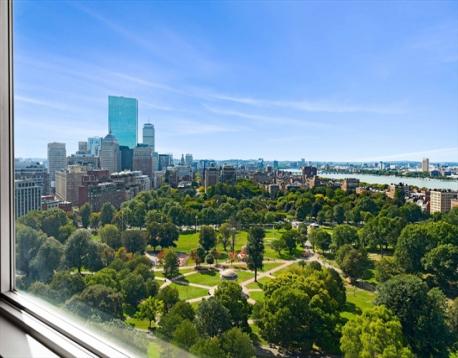 Perched on the 23rd floor of Tremont on the Common, this 1,120 sq. ft. residence offers a rare combination of modern updates and breathtaking panoramic views. Expansive windows frame iconic vistas of the Boston Common, Charles River, and city skyline, while a private balcony provides the perfect spot to take in sunsets or entertain guests. Inside, brand new LVP flooring, fresh paint, and crisp new trim create a bright, contemporary feel. The updated kitchen features rich cherry cabinetry, granite countertops, and stainless steel appliances. Both bedrooms are generously sized, each offering sweeping views that make the city feel like an extension of your home. Two side-by-side garage spaces add exceptional convenience. Residents enjoy full-service living with 24/7 concierge, a fitness center, outdoor pool, and lounge—all in the heart of downtown, steps to dining, shopping, and cultural landmarks.