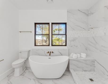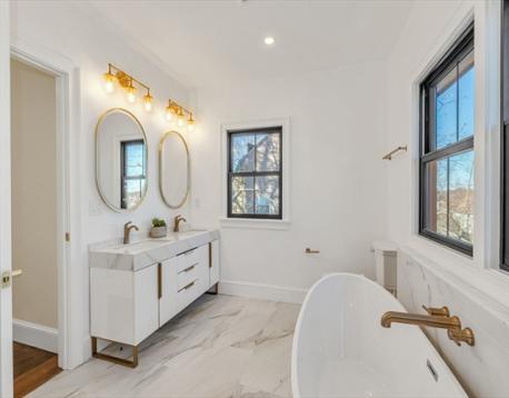 Welcome to an extraordinary home on one of the most sought-after streets in town. Rarely available on Stratford Street: this 2025 builder-owned home is a reimagined work of art featuring top-tier finishes and design on every level! Each fixture and finish speaks to a level of craftsmanship rarely seen—and the multi-level layout is tailor-made for both grand entertaining and everyday ease. The heart of the home is the chef’s kitchen with Café appliances, adjacent to formal dining and a living room anchored by an accent wall & custom built bookcase. On the 2nd floor, enjoy a grand primary suite with a full bath and walk-in closet, two additional bedrooms, a full bath, and a laundry room. The 3rd floor offers a versatile flex space—office/guest room. Finished walk-out basement + full bath. Outdoors, a banquet-sized raised patio delivers serene & commanding views of a lush 13k+ SF garden! Minutes to the Highland commuter train to Boston, Centre Street’s fine restaurants, Cafes & shopping!