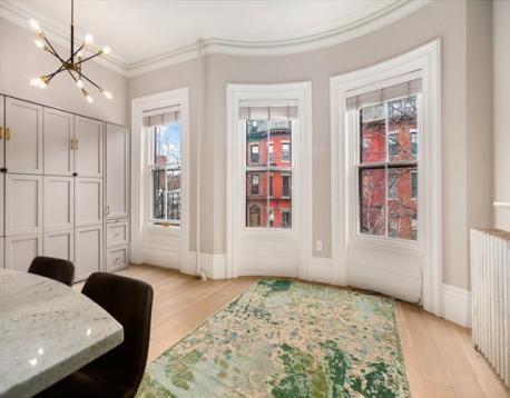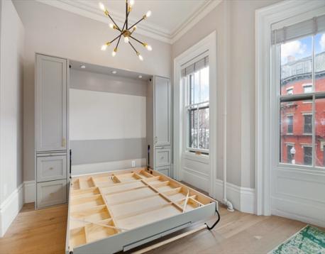 A thoughtful renovation of this studio in a brick Victorian row home.A built in paneled wall can flex between a queen size murphy bed or dining table/desk that are flanked w/ storage space on either side. New wide plank white oak floors contrast well w/ historic details like crown molding, window trim, tall baseboards & a decorative fireplace w/ mirror (included). A sleek new kitchen w/ under cabinet lighting, quartz counters & backsplash, SS appliances (d/w, range & refrigerator), built in microwave & combo washer/dryer. Breakfast bar w/ 2 stools (included).The stylish bathroom has a walk in glass enclosed shower, great lighting & storage. A walk in double closet at entry. A cabinet & drawers,& large storage loft. USB ports, dimmable lighting. Water usage, gas for cooking,H/W & heat included in fee. Non smoking professionally managed association. Convenient to BUMed, Tufts Med & NE. Public transportation (Bus #43 at corner of Tremont St, orange/silver lines, bluebikes &zipcars)
