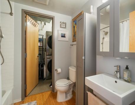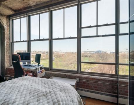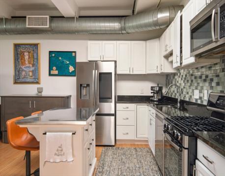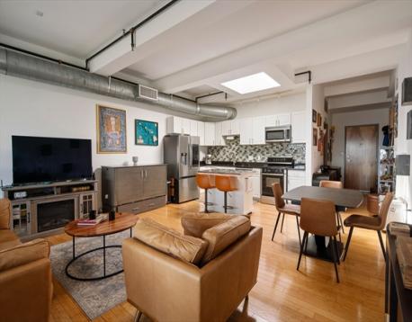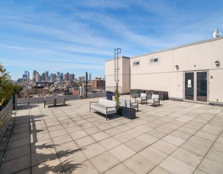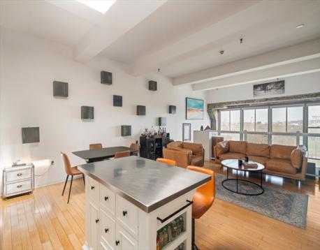 Penthouse loft living at Porter 156 blends industrial character with modern ease. Exposed brick and concrete set the tone, while floor to ceiling windows and a skylight bring in abundant natural light. A smart layout with a step down bedroom area adds separation and functionality. The updated kitchen features Bosch appliances, granite countertops, and a clean tiled backsplash. Bamboo flooring, in unit laundry, and generous storage complete the space. 2 GARAGE PARKING SPACES plus additional storage offer rare convenience. Take in sweeping park and city views from the expansive roof deck, ideal for relaxing or entertaining. This professionally managed, high owner occupancy building includes elevator access, a mail room, and shared gathering space. Just moments to the Blue Line, Maverick Square, Piers Park, and East Boston’s growing restaurant scene, with easy access to downtown, Logan Airport, and major routes. Open houses this weekend Saturday & Sunday 11-12:30pm!