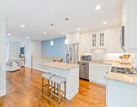Spacious and sun-filled 2006 bi-level townhouse with 2 bedrooms, 2.5 baths, and everything today's buyer needs -- two parking spaces, central air, storage and laundry! The open-concept main level features a chef’s kitchen with granite counters, custom cabinetry, GE stainless steel appliances, gas cooking, and wine fridge, plus a dining area, half bath, and deck. The lower level offers two generous bedrooms, each with a full bath. There is also laundry, and storage located in the lower level. Enjoy central A/C, hardwood floors, and two deeded off-street parking spaces. Moments to Rogers Park, Green Line T, Brighton Center, Boston Medical Center, shops, and restaurants. Easy access to the Mass Pike, Storrow Drive & Rt 9.