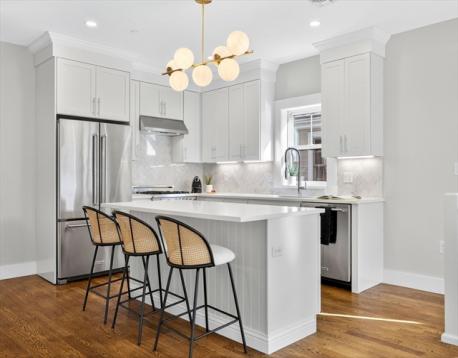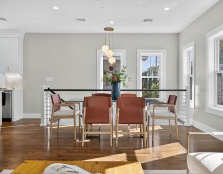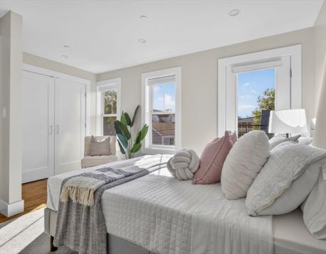 Perfect single-family alternative! Light pours into this stunning front-facing townhouse, where contemporary design meets effortless living. The open floor plan is anchored by a sleek gas fireplace with herringbone tile surround and framed by a wall of oversized windows that fill the space with natural light. A designer kitchen shines with West Elm lighting, marble backsplash, and a spacious island ideal for casual dining or entertaining. Upstairs, the serene primary suite features a spa-like bath with dual rain showers, while two additional bedrooms offer flexibility for guests or creative spaces. A private walk-up roof deck offers a sun-soaked retreat with treetop views, ideal for relaxing or gathering with friends. The versatile first-floor flex room—perfect as an office, gym, or mudroom—adds convenience and function. With garage parking, Elfa closet systems, an EV charger, and a location near JP’s vibrant shops, green spaces, and Orange Line T, this home is a must see!