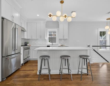 Light pours into this stunning front-facing townhouse-style condo, where contemporary design meets effortless living. The open floor plan is anchored by a sleek gas fireplace with herringbone tile surround and framed by a wall of oversized windows that fill the space with natural light. A designer kitchen shines with West Elm lighting, marble backsplash, and a spacious island ideal for casual dining or entertaining. Upstairs, the serene primary suite features a spa-like bath with dual rain showers, while two additional bedrooms offer flexibility for guests or creative spaces. A private walk-up roof deck offers a sun-soaked retreat with treetop views, ideal for relaxing or gathering with friends. The versatile first-floor flex room—perfect as an office, gym, or mudroom—adds convenience and function. With garage parking, Elfa closet systems, an EV charger, and a location near JP’s vibrant shops, green spaces, and Orange Line T, this home embodies elevated city living with a modern edge.