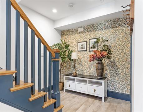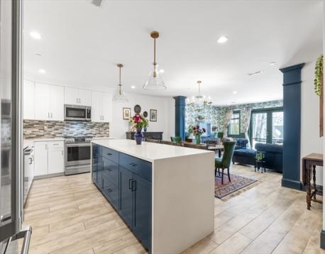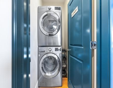 This spacious and sun-drenched townhome feels like a single-family home, featuring a private entrance, covered parking and an exclusive-use patio. Upon entering the first floor there is a powder room, an updated kitchen with ample storage, a dining area, and a large living room with French doors opening onto the private patio area, which has plenty of space for entertaining and relaxing. Upstairs you will find a large bedroom with a walk-in closet, a laundry room, another bedroom with ample storage and a large bathroom. The primary suite has a full bathroom, a large walk-in closet, and a generously sized bedroom. The home's location offers the convenience of public transportation, restaurants, and parks like the Arnold Arboretum.