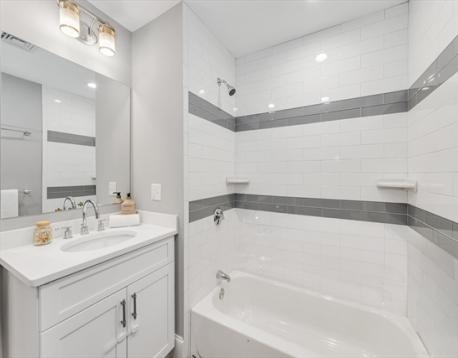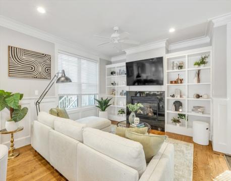 Built in 2019 and crafted to live like a single-family residence, this beautifully appointed townhouse condominium offers sophisticated design, spacious interiors, and exceptional attention to detail. The sun-filled open main level is ideal for entertaining and daily living alike, centered around a designer kitchen with quartz countertops, stainless steel appliances, custom cabinetry, and an adjoining pantry. The living room features a custom built-in bookcase, while elegant moldings and refined finishes throughout reflect the home’s quality and craftsmanship. Each bedroom is a private ensuite sanctuary, highlighted by a serene primary suite with walk-in closet. The finished lower level provides valuable bonus space for a family room, media area, or home office. Complete with second-floor laundry, efficient HVAC, and two-car parking, this turnkey home delivers comfort, luxury, and modern style in equal measure.