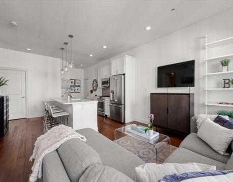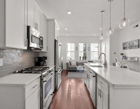 Beautifully appointed two-bedroom, two-bath residence at 170 West Broadway in a sought-after South Boston boutique elevator building. Completed in 2018, this contemporary home offers an open-concept floor plan with 10-foot ceilings, wide-plank oak flooring and oversized windows that fill the space with natural light. The chef’s kitchen features quartz countertops, custom cabinetry, a large island and Bosch stainless-steel appliances. Both bedrooms, 1 with en-suite bath are generously sized with ample closet space and abundant light. Additional highlights include in-unit laundry, central A/C, deeded garage parking and extra storage. Professionally managed, pet-friendly building with elevator and secure entry. Enjoy easy access to Broadway’s vibrant restaurants, cafés, and shops, the Seaport District, and the Red Line T.