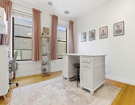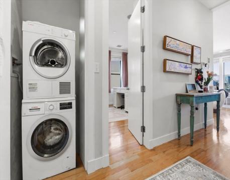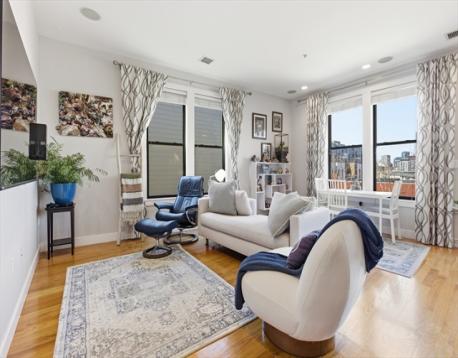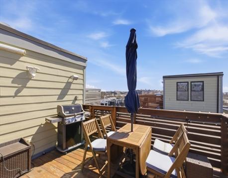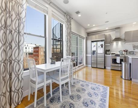 South Boston living at its best. This bright, open-concept home centers around a chef’s kitchen designed for entertaining, complete with a large island, gas range, updated appliances, and quartz countertops. The primary suite features a large walk-in closet and a spa-inspired bath with double sinks and an oversized glass shower. A generous second bedroom and full bath offer flexibility for guests or an at home office. A private deck off the kitchen leads to a stunning roof deck with sweeping city views - incredibly rare to find two private outdoor spaces like this. Highlights include 10-foot ceilings, built-in speakers, in-unit laundry, 240V electric charger, and deeded garage parking with space for storage. Unbeatable location near Broadway’s top restaurants, shops, and easy access to the Red Line.