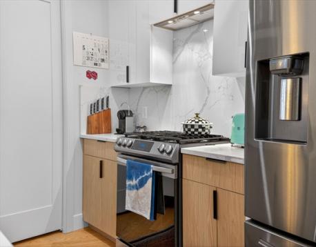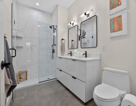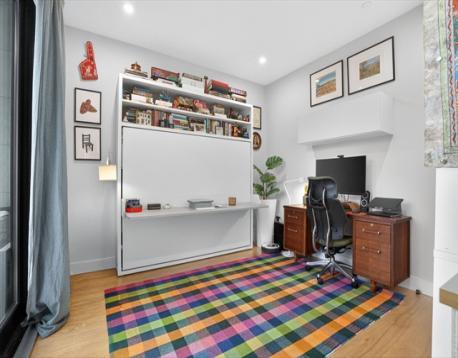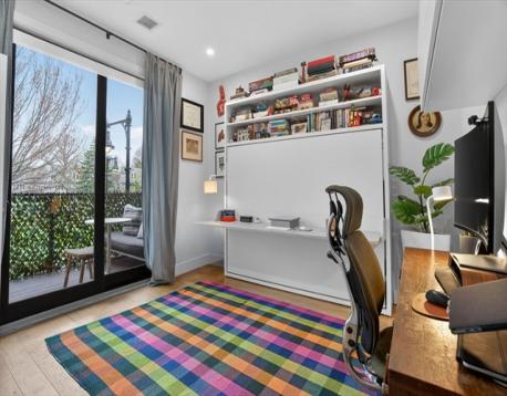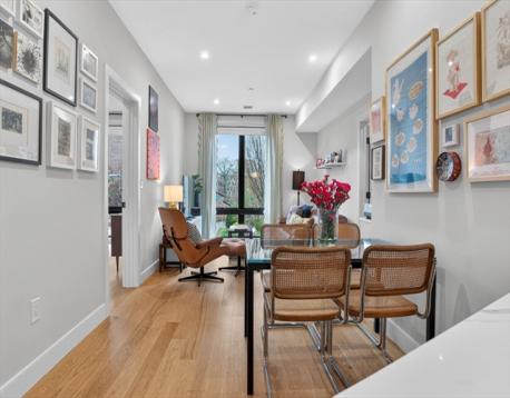 Move-in ready No. 202 at St. Mark's Place is a 2023-built 2-bed/2-bath condo offering the best of new construction in one of Dorchester's most sought-after neighborhoods, Shawmut. Wide-plank oak floors, soaring windows w/beautiful views and an open-concept layout set the tone. The chef's kitchen features custom millwork, Calacatta Quartz waterfall countertop, Samsung appliances and black matte fixtures. The second bedroom includes a built-in "murphy bed" that converts into a full home office - perfectly efficient and useful. Both baths are appointed with Delta black matte fixtures and crisp, clean finishes. Step onto your private covered deck - a rare city find. The intimate 11-unit elevator building offers garage parking, in-unit laundry, fitness center and professional management with zero deferred maintenance. Outside, Dorchester delivers - NYT-rated Via Cannuccia, local markets, Ashmont, Fields Corner, Adams Village, BlueBikes and the Shawmut Red Line are all within easy reach.
