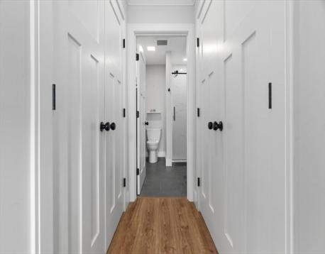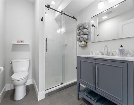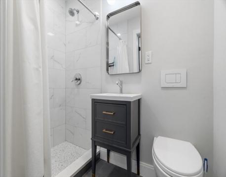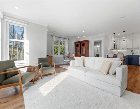 Stunning 2 bedroom, 2.5 bathroom condo with TWO covered garage parking spaces in the heart of West Roxbury. Exceptional design, upscale finishes make it a turn key unit. Thoughtfully designed open living concept flows from the eat in kitchen to living area with bonus space for a dining table. Walking distance to the commuter rail, short ride to Forest Hills and on the bus route. Brand new 2022 construction offering beautiful quartz with lovely island, sleek shaker cabinets, stainless steel appliances, and gas cooking. The primary suite is spacious with double closets and an en suite bathroom. The second bedroom is light and bright and also has an en suite. Laundry in unit is tucked away nicely and adds convenience in the half bathroom. Extra storage in unit and TWO covered garage parking spaces. Located in a Foodie's paradise next door to the Porter, across from West, walking distance to the Boston Alehouse and Knoll Street Cafe. Close proximity to Roslindale, JP & Longwood.