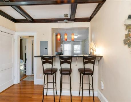 Beautiful 2-bed, 1-bath condo on Commonwealth Ave in the heart of Brighton. This inviting home features an open layout with a well-appointed kitchen offering granite countertops, modern cabinetry, pantry, breakfast bar, gas cooking, dishwasher, and in-unit washer/dryer. The kitchen flows seamlessly into the living area, ideal for everyday living and entertaining. High coffered ceilings and hardwood floors run throughout. Both bedrooms are generously sized, complemented by a spacious, updated bathroom. Enjoy access to a covered common porch. Conveniently located near Whole Foods, Cleveland Circle, Chestnut Hill, and Boston College, with easy access to the Green Line (B) and a short walk to the (C) and (D) lines.