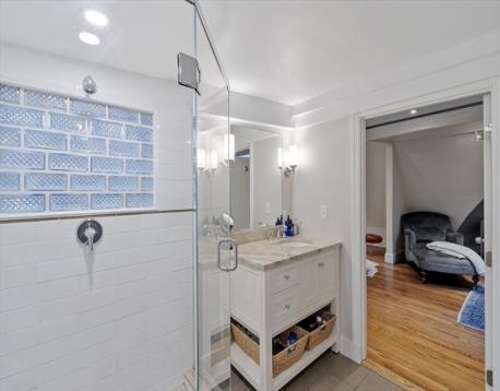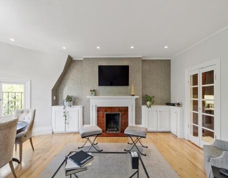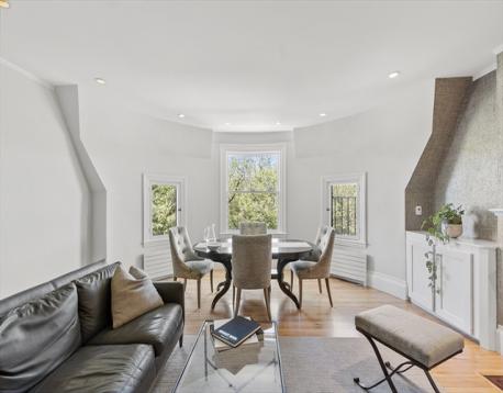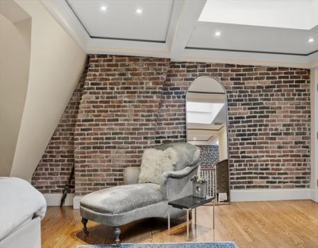 Historic Commonwealth Avenue Penthouse opportunity with private roof deck and one deeded parking space in rear of building. This duplex home that overlooks the Commonwealth Mall is located in a Romanesque style brownstone which has two bedrooms, two full spa like marble bathrooms, and an elegant front facing living and dining room with original detail fireplace, bay windows, and French doors to the kitchen with appliances by Sub Zero, Bosch and Thermador. The loft-like master bedroom with skylight encompasses the upper level and connects to a separate sitting area, large walk-in closet and full bath with stackable laundry. Modern amenities include recessed lighting, a wet bar, new gas lines installed throughout the building, central A/C with newer compressor, and updated elegant common spaces all in a professionally managed association. A full staircase leading to roof deck offers wonderful views of tree-lined Commonwealth Avenue and the Back Bay skyline.
