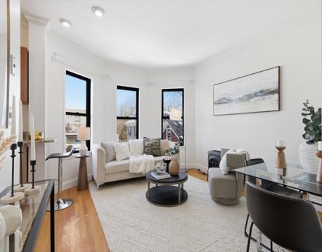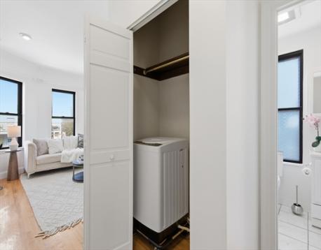 Perched on the top floor at the end of a quiet cul-de-sac, this sun-filled one-bedroom condo blends comfort, style, and a great Jamaica Plain location. Thoughtfully updated with an efficient layout, every inch of space is maximized for easy living. The kitchen features maple cabinetry, granite countertops, and newer stainless steel appliances, opening to a bright living and dining area highlighted by a classic bay window. The spacious bedroom fits a queen or king bed and offers generous closet space. Hardwood floors run throughout, adding warmth and a modern touch. Enjoy the convenience of an in-unit stand alone washer, common dryer, basement storage, and rooftop access. Pet-friendly with a low HOA, and just steps to local restaurants, shops, the Arnold Arboretum, and public transportation—this is simple JP living at its best.