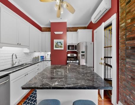 Step into your dream home in Beacon Hill! This stylish two-bedroom, two-bath brownstone features in-unit laundry and a coveted tandem parking spot. The bright, open living and dining area has large windows that overlook Hancock Street and cherry trees, filling the space with natural light. The sunny kitchen equipped with ample cabinetry, granite counters, stainless steel appliances, and gas cooking with a sky light and slider to a charming deck providing an ideal space for entertaining, plus an enormous pantry/storage area with laundy, The primary suite is a personal retreat with high ceilings, elegant paneled walls, walk-in closet and an ensuite bath. The second bedroom offers excellent closet space and strategically located for enhanced privacy. 18 Hancock Street is a pet-friendly home close to the Financial District, MGH, Whole Foods, the T, Boston Common, and a variety of dining and shopping options. Boasting an impressive walk score of 98 enjoy convenient urban living.