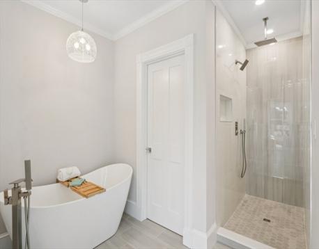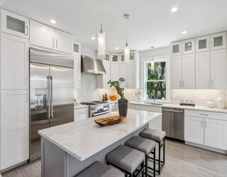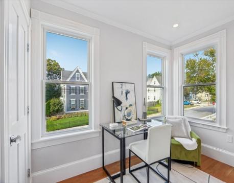 Welcome to 183 Temple St, West Roxbury! This beautifully renovated 10-room, 5-bedroom, 3.5-bath home blends timeless charm with modern luxury across three levels. The first floor features a foyer with open staircase, living room, powder room, and a chef’s kitchen with high-end appliances, custom cabinetry, quartz counters and backsplash, large island, high ceilings, and open flow to the dining room. The second floor offers three bedrooms, laundry, and a primary suite with dual walk-in closets, custom shelving, and a spa-like bath with double sinks, soaking tub, and walk-in shower. The third floor includes two bedrooms, full bath, and a versatile flex space. Exterior updates include new siding, windows, roof, driveway, deck, and a large private fenced yard. The unfinished basement provides excellent storage or expansion potential. Conveniently located near Centre Street shops, restaurants, and commuter rail. Open houses Sat 11–1 & Sun 2–4.