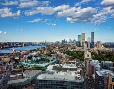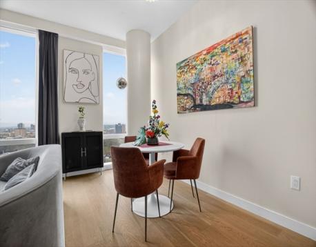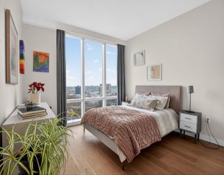Welcome to The Pierce! This sun-drenched, 19th floor sanctuary is perfectly positioned in the vibrant heart of Fenway. Spanning 1,148 SF, this sophisticated south facing residence features an open-concept layout framed by floor-to-ceiling windows that capture sweeping city views and fill the home with natural light. The kitchen is a culinary showpiece, boasting a waterfall quartz countertop, custom cabinetry, and premium appliances, all complemented by hardwood flooring throughout. The spacious primary suite offers a walk-in closet and an elegant ensuite bath, while additional conveniences include in-unit laundry, garage parking, and storage. As part of a premier full-service building, residents enjoy 24/7 concierge and over 20,000 SF of world-class amenities, including a rooftop pool, fitness center, cocktail lounge, and a landscaped grill deck. Just steps from the legendary Fenway Park and the MBTA Green Line, this home offers an unparalleled blend of luxury and convenience.