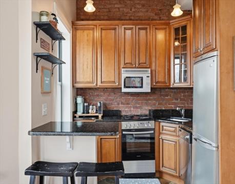 Top-floor living in Allston with off-street parking in a classic brick rowhouse. This bright and airy home features an open layout with soaring ceilings, skylights, and a sun-filled living room centered around a charming decorative brick fireplace. Step outside to your private back deck for an ideal indoor-outdoor lifestyle. Complete with central AC, in-unit laundry, and private parking behind the building, this home checks every box. Enjoy unbeatable access to the Mass Pike, Storrow & Memorial Drive, Harvard University, and Allston’s vibrant mix of restaurants, cafes, and shops.