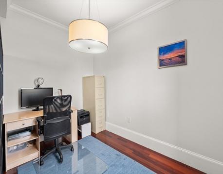 Located on the border of Back Bay and Fenway, this gracious upper-level floor-through residence in an elevator Brownstone building offers unobstructed views of the Charles River and a refined living experience at exceptional value. This pristine home is filled with natural light throughout the day, features high ceilings and includes two bedrooms plus an office, two full bathrooms, and two direct-access parking spaces. The renovated chef’s kitchen, complete with stainless steel appliances, granite countertops, a breakfast bar, and ample prep space, flows seamlessly into the living room with a gas fireplace and a dining area showcasing stunning Charles River views. The oversized primary suite offers a wall of closet space and a stylish en-suite bath. The second bedroom is generously sized, and the office/flex space presents the opportunity for a third bedroom. Central A/C, in-unit laundry, professional management, and a pet-friendly association complete this exceptional home.