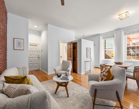 Open, airy corner 2bedroom on charming Fayette St offers eight new oversized windows, tall ceilings, exposed brick and expansive living/dining area. Renovated kitchen with Bosch stainless appliances, granite counters and pristine Shaker style white cabinetry. Enjoy al fresco drinks on the sun-soaked Juliette balcony. Hardwood flooring, abundant closet space and convenient common laundry. Plus a low condo fee that includes heat. All this in Boston's historic and tranquil Bay Village neighborhood just steps from the South End and Back Bay.