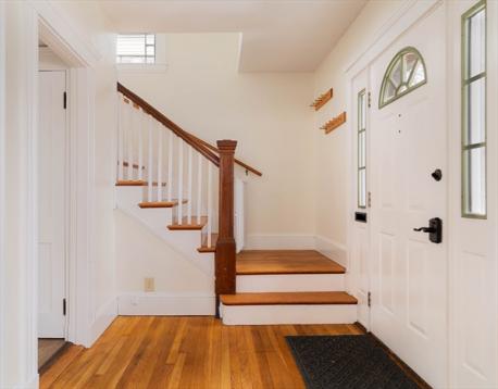 Between Rozzie and Cleary-Logan Square, a 3 bed Dutch Colonial pairs modern updates with antique charm. Elevated w/ southern exposures, sunlight pours through. The living room centers a decorative bricked fireplace, oak floors underfoot, crown molding, and a seamless flow to the sunroom & formal dining room. A white & bright kitchen offers stainless appliances, LVP flooring, charming retro counters & a door leading out to a spacious deck. Mature trees surround the fenced yard. Upstairs, three bedrooms, plus the perfect office. A new bath reno w/ subway tile, trendy gold fixtures & addition of a tub. Storage & expansion possibilities abound in the full-height pull-down attic + the garage with a convenient side entry into a walled basement room, full ceiling height- Was that Pittsburgh potty once a bathroom? With mini-split & ducted AC for year round comfort, a newer water heater & windows + 200 amp electric. 1.1mi to Commuter Rail, or Ron’s Ice Cream & Bowling- priorities are up to you!