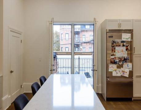 Set on a picturesque tree-lined South End street, this property offers a rare combination of classic brownstone charm, exceptional scale, and two tandem parking spaces.The main living level is a standout, featuring approximately 12-foot ceilings, elegant crown molding, and an unusually wide (~22’) open-concept layout—an uncommon offering in the South End. The expansive living and dining areas are complemented by custom built-in cabinetry, providing both architectural detail and functional storage.Additional features include gas cooking, two gas fireplaces, forced air heating, central air, and a gas line for outdoor grilling. Recent updates include building repointing, front stair improvements with added under-stair storage (2025), renovated vestibule (2020), and a Comelit video entry system.Strong location near South End dining, parks, and neighborhood amenitie