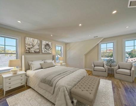 Welcome to 1905 River St, a beautifully designed multi-level condo in the heart of Hyde Park, Boston. This spacious home spans three levels, offering a thoughtfully designed layout ideal for modern living. The main floor features an open-concept kitchen with white cabinetry, quartz countertops, a dining area, a comfortable living space, and a convenient half bath. The second level includes three generously sized bedrooms and two full bathrooms, while the third-floor master suite offers a private retreat with ample space. Additional highlights include hardwood floors throughout, ceramic tile in all bathrooms, eco thermostats, security cameras to exterior, a private deck perfect for relaxing or entertaining, and off-street parking. Experience the perfect combination of comfort, style, and smart features in this move-in-ready home!