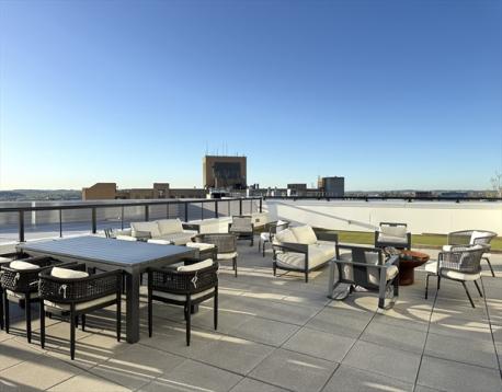 Your private oasis awaits at this stunning Corner 2 Bedroom 2 Bath with 400+SF PRIVATE TERRACE&TWO DEEDED GARAGE PARKING at STRATUS, Brighton's 2022 construction, premier full service luxury condo community. Enjoy spectacular sunsets & unobstructed views from the corner living area via floor to ceiling windows and adjacent private terrace in addition to a designer kitchen appointed with integrated Bosch appliances, stone countertops & tile backsplash. Separated DUAL ENSUITE Bedrooms ensures privacy, each with luxurious oversized spa Baths. High ceilings, hardwood floors throughout & in-unit Vented Washer/Dryer complete the home. Enjoy concierge services&curated amenities as extension of home: Fitness Center, Flex Studio, Sauna, Library, Expansive Terrace with Grill Stations & Fire Pits, Sky Lounges, Catering Kitchen, Roof Deck, Billiard Lounge, Bike Storage & more. Unparalleled convenience with nearby Whole Foods, MBTA Green Line, acclaimed dining & moments to Brookline&Downtown Boston