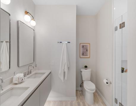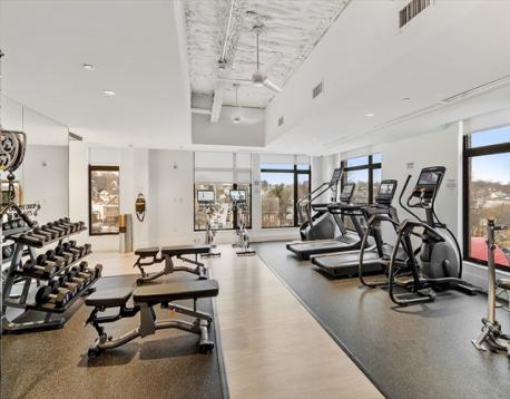 A welcoming concierge, curated art, and interior finishes that speak of quiet luxury set the stage as you enter the building; your journey home is paved with plush carpets and architectural lighting that softly guides your way. Here's your chance to live in a penthouse-level corner Unit 725, where sweeping, unobstructed views stretch out before you, framed by 8ft+ ceilings and an airy, open-concept kitchen, living and dining space designed for living and retreat. Step out to your private balcony for morning coffee under an open sky. The Primary BR offers a walk-in closet and ensuite bath with deep double vanities, while the 2nd BR is equally well-appointed with two closets. Private storage (B710) on the same level, and 2 tandem parking spaces (28) in the garage below. Beyond your door, this condo is rich with amenities to elevate daily living: gym w/ sauna, library, multiple conference rooms, pool table, pet spa, dog run, and access to a stunningly repurposed chapel building.