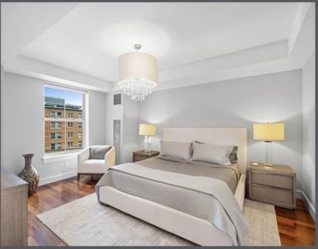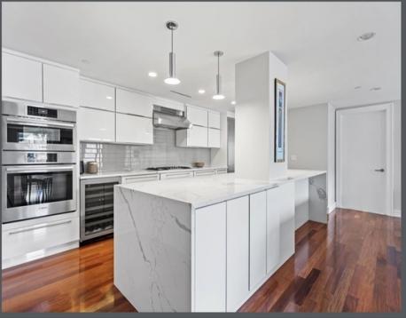 Beautifully renovated home at wonderful Battery Wharf. A formal entry foyer leads you into an expansive open living dinning with floor to ceiling glass opening to a wonderful terrace. The renovated cooks kitchen is custom with white lacquer cabinetry, stainless appliances, beverage cooler and 2 large pantries. Stone waterfall countertops are stunning ! Sliding doors open to a lovely den or home office with built in shelving. The sumptuous primary bedroom is a oasis with direct access to terrace, a large walk in closet and a Spa like en-suite bath with soaking tub,shower with body spray,twin sinks and plenty of storage. Then secondary bedroom has en suite bath with both soaking tub and oversized spa shower. Walk in closet. This home boasts almost 2200 square feet and has one valet garage parking, separate storage, concierge services and on site gym. EXHALE SPA, Hotel services and easy access to all highways. Walk into Bostons famed N End.