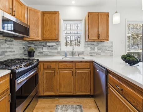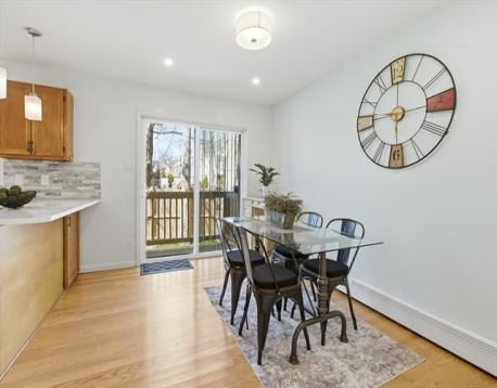 Discover the perfect blend of privacy, style, and convenience in this turnkey 3 bed, 1.5 bath townhouse on a quiet street in Dorchester. With over 1,000 sq ft of living area, this move-in-ready home features hardwood floors, recessed lighting, large windows, and a modern kitchen with quartz countertops, wood cabinetry, and stainless steel appliances. Upstairs includes a generous primary bedroom with walk-in closet, an updated bathroom, and two more bedrooms. The partially finished basement offers 500 sq. ft. of flexible bonus space, ideal for an office, gym, or media space, with additional storage in the attic. Enjoy a newly landscaped private backyard, one deeded off-street parking spot, and shared association parking. The professionally managed complex includes water, trash, exterior maintenance, snow removal and landscaping. Just minutes to the Red Line, highways, parks, dining, and only a mile to the beach, this home is a rare opportunity for both owner-occupants and investors.