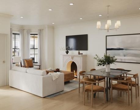 This brand new reimagined single family brownstone spanning over 4 levels of living, complete with off-site garage parking, blends classic architectural details with today’s modern finishes. The main living level showcases custom crown molding, an original marble fireplace, a stunning chef’s kitchen with white quartz counters, Thermador and Fisher and Paykel appliances, powder bath and an open layout ideal for entertaining.The primary suite level features a spacious bedroom with a second original marble fireplace, a spa-like bath, and large walk in closet. The top floor offers three additional bedrooms and a full bath. A versatile lower-level bonus room with wet bar is perfect for a family room, gym, or media space and and 5th bedroom with en-suite bath round out this thoughtfully designed home. Outside, enjoy a beautifully redesigned private patio highlighted by a mature magnolia tree, an inviting retreat in the heart of the city! On track to be completed by end of December.