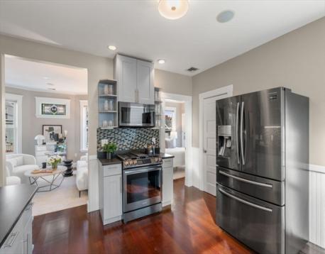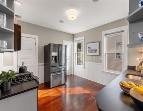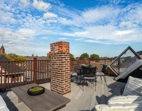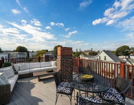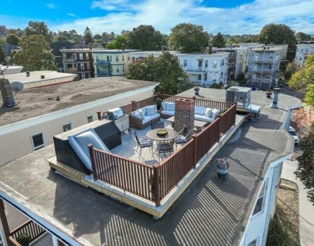 Stunning Penthouse in Savin Hill. Beautifully updated 2 bed, 1 bath home on a tree-lined street in the sought-after Savin Hill neighborhood. This bright and spacious home features a rare double parlor with a wood-burning fireplace, high ceilings, and gleaming hardwood floors throughout. The updated eat-in kitchen includes SS appliances, granite counters, and a full-size W/D in the pantry. The primary bedroom fits a king-size bed and offers a large 5x9 walk-in closet. The second bedroom features an oversized closet and access to a private rear porch. Enjoy three private outdoor spaces, including a 350 sq. ft. roof deck with stunning Boston skyline views. Additional highlights include new heating and central A/C, private basement storage, and two off-street parking spaces. Conveniently located near parks, beaches, and running routes. Close to JFK/UMass Station (Red Line), I-93, and neighborhood favorites such as Harp & Bard, Blend, Dbar, Shanti, Comfort Kitchen, and Dorchester Brewing Co