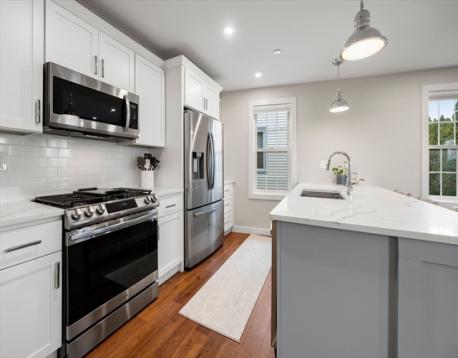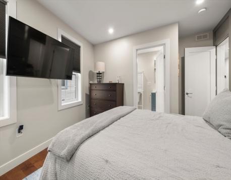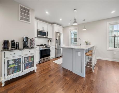Built in 2021, this Orient Heights home blends modern style with everyday comfort. Natural light pours in through eight oversized windows, brightening the open kitchen and living areas and creating an easy, welcoming flow throughout. The kitchen serves as the centerpiece, featuring stainless steel appliances, a gas stove, and a spacious peninsula with seating for three to four. The primary bedroom offers great size, two windows, and a generous closet, while the ensuite bathroom includes a sleek glass shower with a clean, modern finish. The second bedroom is versatile, ideal as a guest room, home office, or workout space depending on your needs. Additional perks include garage parking and ample storage throughout, completing a home designed for both convenience and style.