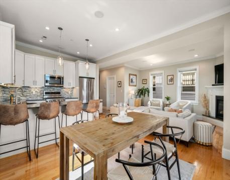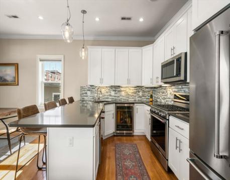 Stunning PENTHOUSE with PRIVATE ROOF DECK, spacious open concept living & water views. This 2016 conversion has top of the line finishes, gorgeous primary suite with walk in closet, huge primary bathroom with double vanity, oversized second bedroom & additional bathroom. The living space has soaring ceilings, generous sized kitchen with plenty of bar seating, a full sized dining room area and a sprawling living room centered around a beautiful gas fire place. Off the kitchen you will find a large covered deck perfect for al fresco dining which leads you to your private roof deck with panoramic city & water views. The property has copious amounts of storage including two mudroom nooks, deep closets, & a full 5x6 storage unit in the basement. This home dwarfs your typical 2 bed 2 bath space & is built to entertain. In addition, easy access parking available. The centrally located home is steps to the beach, parks & all the fabulous restaurants South Boston has to offer. SEE FLOOR PLAN.