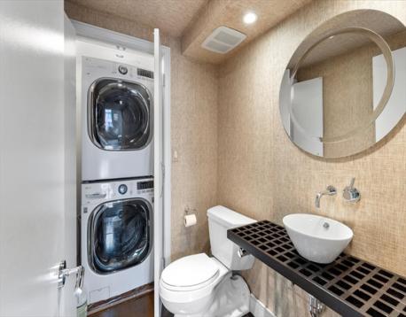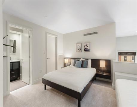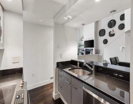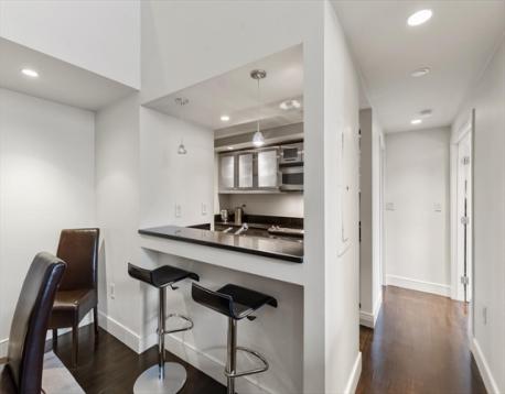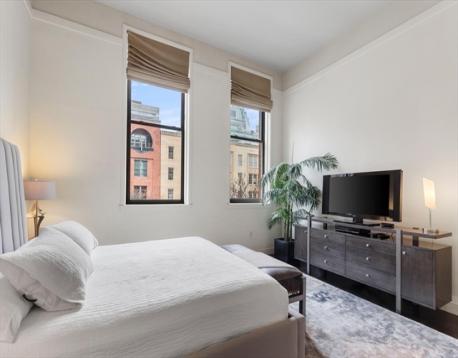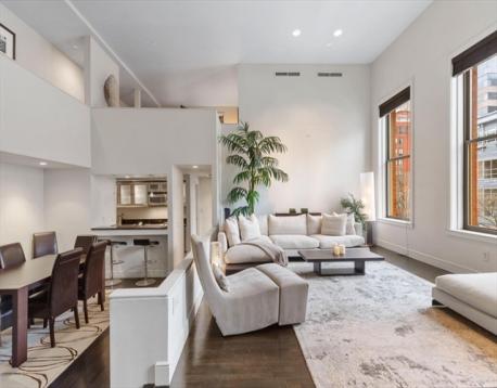 Welcome to The Prince, where refined city living meets dramatic architectural scale. This sunny second floor 2 bedroom, 2.5 bath duplex offers an open, airy layout highlighted by soaring 15-foot ceilings and five oversized windows that flood the home with natural light. A statement fireplace with custom built-ins anchors the elegant living room. The open kitchen is beautifully appointed with high-end appliances and a generous breakfast bar that flows seamlessly into the dining area, ideal for entertaining. A spacious primary suite and powder room with laundry completes the main level. Above, an architectural walkway overlooks the living space and leads to a large second bedroom and full bath. Residents enjoy concierge service, a double-sided rooftop terrace with panoramic city views and wet bar, plus direct access to a deeded radiant heated parking space. Ideally positioned in the heart of Back Bay on Newbury Street, moments from Boston’s premier boutiques and dining.