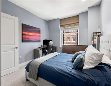Set on the fourth floor of the Prince Building, this sun-drenched corner residence is defined by its open, airy feel and rare south and east exposures that flood the home with natural light throughout the day. A deeded parking space located directly next to the building entrance offers exceptional convenience. The living space is anchored by a wood-burning fireplace with a new charcoal granite surround, creating a timeless Back Bay focal point. Bamboo floors add warmth throughout, while the refined kitchen features leathered white stone countertops, a matching stone table, and under-cabinet lighting. Recent updates include new tile in the kitchen and primary bath and a new HVAC system with WiFi thermostat. Custom bamboo shades and a blackout shade in the primary bedroom provide privacy without compromising light.The Prince is a full service Concierge building with a common rooftop deck and sweeping city views, ideally located on Newbury Street amid Boston’s premier shopping and dining.