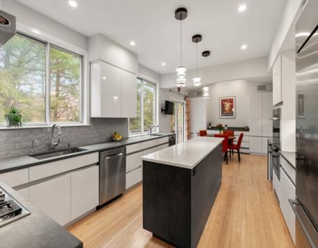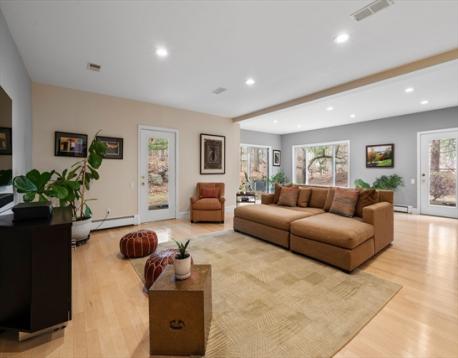 Updated townhouse in sought-after Allandale Condominiums with bright, open spaces and green views throughout. Main level features den with fireplace and custom built-ins, oversized living room with fireplace and sliders to full-size deck, sun-filled dining room, and renovated eat-in kitchen with high-end appliances and large island. Primary suite offers double closets and new spa-like bath with steam shower and soaking tub. Powder room, laundry, and direct-entry two-car garage complete this level.Second floor includes lofted landing ideal for office or lounge, plus two bedrooms and two full baths. Above-grade lower level provides a light-filled media/recreation room, additional bedroom, full bath, and ample storage.Amenities include clubhouse, gym, yoga room, pool, and tennis court. Convenient to Allandale Farm, Arnold Arboretum, Jamaica Pond, and Longwood Medical.