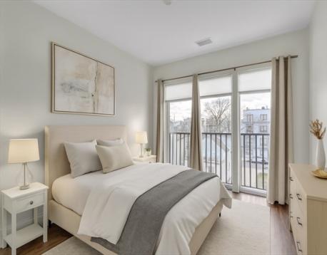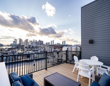 Spacious Jeffries Point one-bedroom condo with west-facing exposure, sweeping water and city views, private deck, and deeded parking. Enjoy stunning sunsets overlooking the harbor and skyline. The stylish open layout showcases beautiful hardwood floors and a sleek kitchen with quartz countertops and stainless steel appliances. The bedroom includes a Juliette balcony framing incredible views and filling the space with natural light. Oversized bath with Calacatta porcelain tile and glass-enclosed shower. In-unit laundry, central air, and garage parking check all the boxes. Built in 2022, this professionally managed elevator building offers a state-of-the-art fitness center, bike storage, and two expansive roof decks with amazing panoramic harbor and Boston views. Only 5 minutes to Maverick Square, the Blue Line, waterfront parks, and East Boston’s vibrant dining scene.