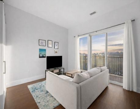 Exceptional southwest-facing penthouse in Jeffries Point offering sweeping city views. Built in 2022, this sun-filled junior one bedroom residence features an open-concept layout, central A/C, in-unit washer and dryer, and thoughtfully designed use of space that extends out to the private balcony. High-end finishes include stainless steel LG appliances, custom high-gloss white cabinetry, white Silestone countertops, and Calacatta porcelain tile. This elevator building is complemented by two roof decks, a fitness center, package room, bike storage and garage parking may be available for rent or purchase. Ideally located just a five-minute walk to the Maverick Blue Line with quick access to downtown Boston, Logan Airport, a plethora of restaurants, and tree lined parks. An exceptional opportunity for luxury living in East Boston’s premier neighborhood.