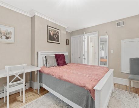 Quintessential South End charm. High ceilings, beautiful moldings, updated kitchen, near 500 sqft roof deck, 2 full parking spaces are a few of the highlights. Ascend the stairs to the owners parlor level entry. You'll be greeted by generously proportioned living and dining rooms, separated by movable pocket doors, as well as an updated kitchen. The second level features your primary bedroom with en suite bath, second bedroom with direct access to the common full bath and separate half bath. Your top floor offers two more bedrooms, and office nook and full bath. Combine the office and bedroom for an absolutely stunning space that spans the full width. A full set of stairs will lead you to your private roof deck. First floor 2bed/2 full bath apartment is a wonderful income generator....or reunite with the upper unit for a grand single family. Walkout unfinished basement could be a future value add. Close to transportation, restaurants and shops.