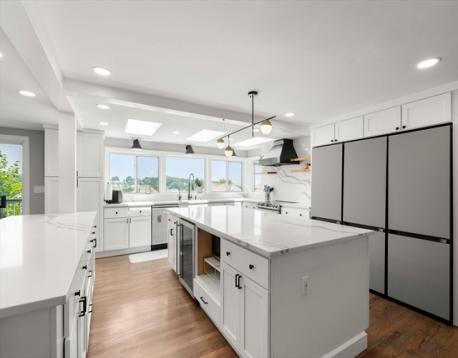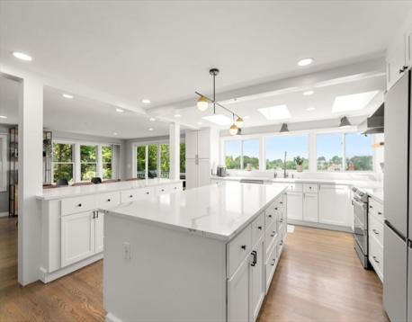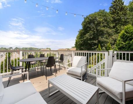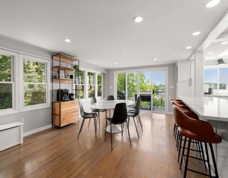 Beautifully updated 5-bed, 3-bath home with stunning panoramic views — the last house on a dead-end street! Immediately feel the spaciousness of the open-concept layout, seamlessly connecting the living room, dining, and show-stopping kitchen. The kitchen is a true centerpiece, featuring quartz countertops, generous center island, and sleek breakfast bar - ideal for entertaining. The dining room opens to a raised deck through double sliding glass doors, where sweeping views take center stage. The first floor includes two bedrooms and a full bath. Upstairs offers a massive primary suite with a full bath and private sunroom retreat. Two spacious bedrooms and another full bath complete the upper level. A large finished basement provides flexible space with access to a patio and a large storage area. Located right on the Boston/Newton line in Oak Square with access to BC, Brighton Center, golf, Boston Landing, Charles River, and the Mass Pike within 1-2 miles.