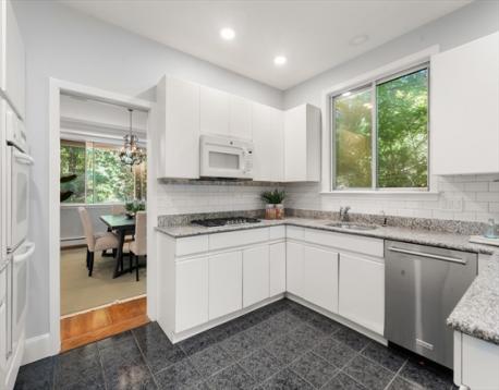 Set on 43 acres of beautifully landscaped grounds near Chestnut Hill, Jamaica Plain, and Brookline, this 4,600 square foot townhouse offers the privacy of a single-family home with condo convenience. The first floor features a bright living room with fireplace and built-ins, opening to a large deck and private garden. A gracious dining room, a spacious den/office, and a generously sized primary bedroom suite with excellent closet space create a comfortable layout. The sun-filled eat-in kitchen has direct access to a deck and patio, and a laundry room completes the level. Upstairs are two bedrooms and two full bathrooms. The finished lower level adds 1,760 square feet of flexible space, including a family room, kitchenette, two bedrooms, and two bathrooms—ideal for guests or extended family. There’s also 703 square feet of unfinished storage. A two-car garage and lovely grounds make this a special place to call home. Amenities: clubhouse, gym, tennis court, and in-ground swimming pool.