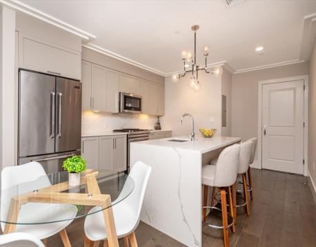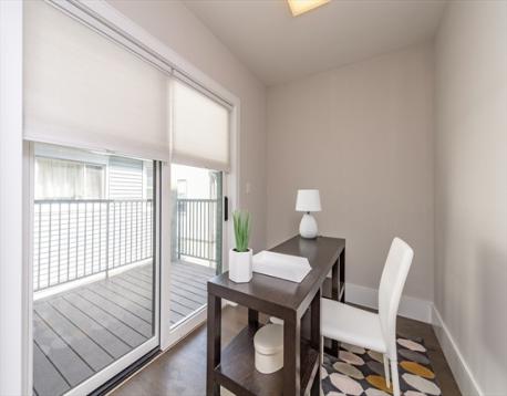 Check out this 2+ bedroom/2 bath condominium residence with 2 car parking, a private deck and over 1,200 sq/ft of living area in The Saybrook, a beautifully designed + crafted building near Boston Landing, Brighton Center and more! Enter into an open floor plan kitchen with contemporary cabinetry, quartz counters and an island with seating for 3. Beyond the kitchen is an area for a dining table and a living room space with a fireplace. There is also an adjacent study/home office with access to a 70 sq/ft deck. The bedrooms are both of a nice size, with the primary bedroom having a Juliette balcony, a walk in closet and a gorgeous marble bath with double vanity sink. The second bathroom is also clad in marble, and there is in unit laundry as well. Elevator building with a gorgeous lobby/package center and a gym that is exclusive for residents.