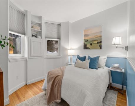 Situated across from Sparrow Park, this first and lower floor duplex will win you over for its coziness and charm. A private entrance leads to a welcoming foyer with hardwood floors and exposed brick. A little further, you will discover a light-filled primary bedroom with a tastefully designed en-suite bathroom. Hosting a guest is feasible with the versatile second bedroom and its adjacent modern bathroom, which could also be used as an office or den. The lower floor features an open - concept layout with many built-ins, a stunningly renovated kitchen with Bosch appliances, a desk nook, and a delightful bay window with a seating area that overlooks the private courtyard, accessible through the unit or the parking lot. Additional features include a water-source heat pump, central air-conditioning, a brand new in-unit washer/dryer, and ample closets. This quaint pied-à-terre is set in an ideal South End location, within proximity to a plethora of amenities.